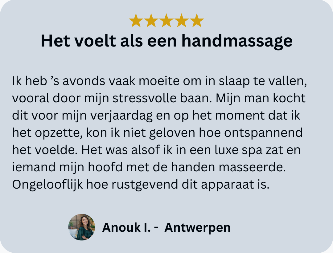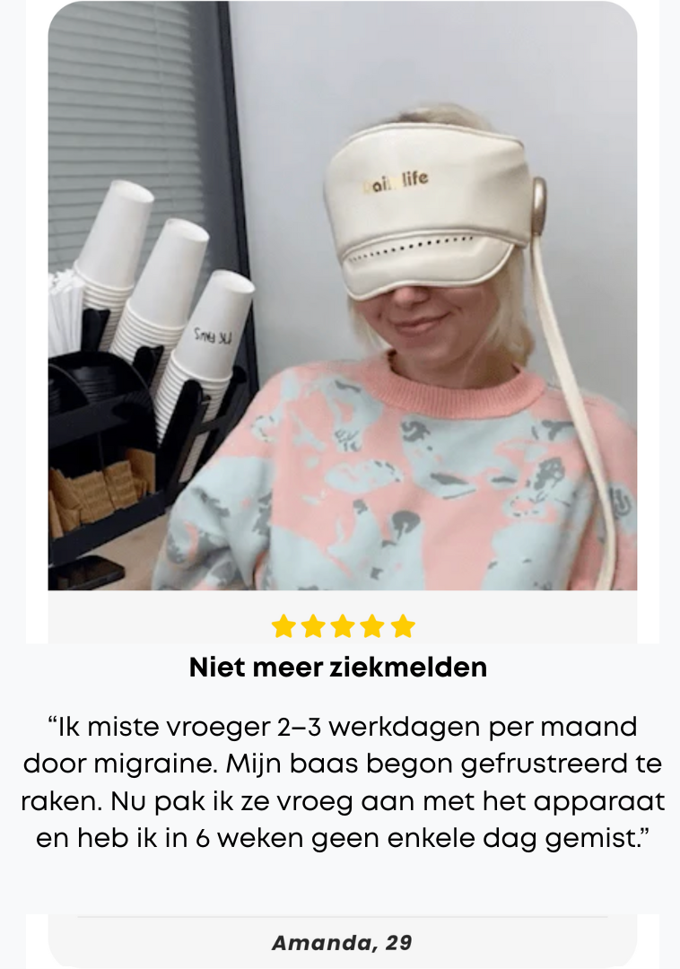 Mijn migraine is aanzienlijk verminderd en het voelt heerlijk om te gebruiken na een lange dag.