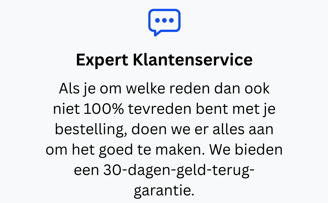 Onze 90-dagen geld-terug-garantie zorgt ervoor dat alles voor jou in orde komt. Neem gewoon contact op met onze klantenservice en wij zorgen voor de rest.