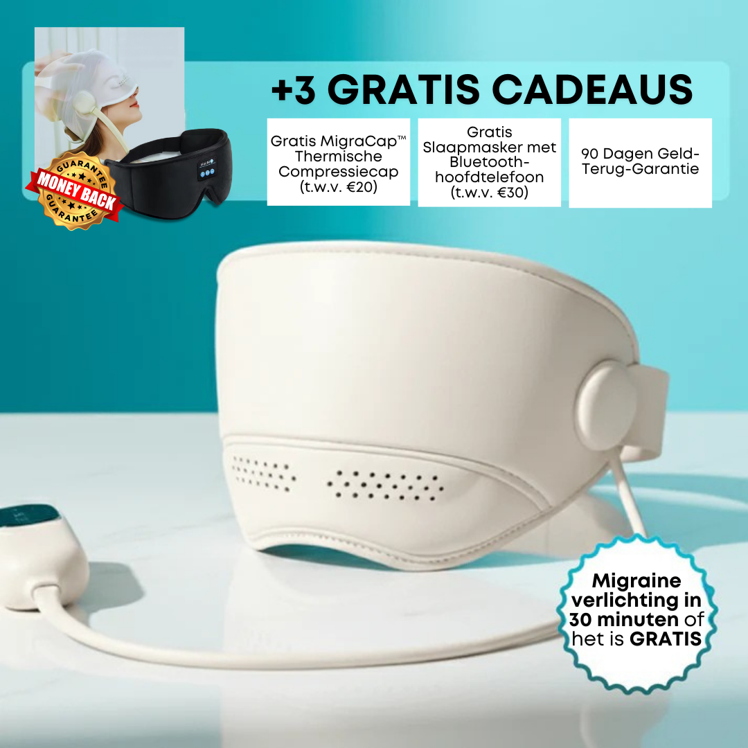 ✅ Gratis MigraCap™ Thermische Compressiecap (t.w.v. €20) – geeft verkoelende of verwarmende compressie direct op je hoofd, helpt druk te verlichten en ontstekingen te verminderen tijdens migraineaanvallen