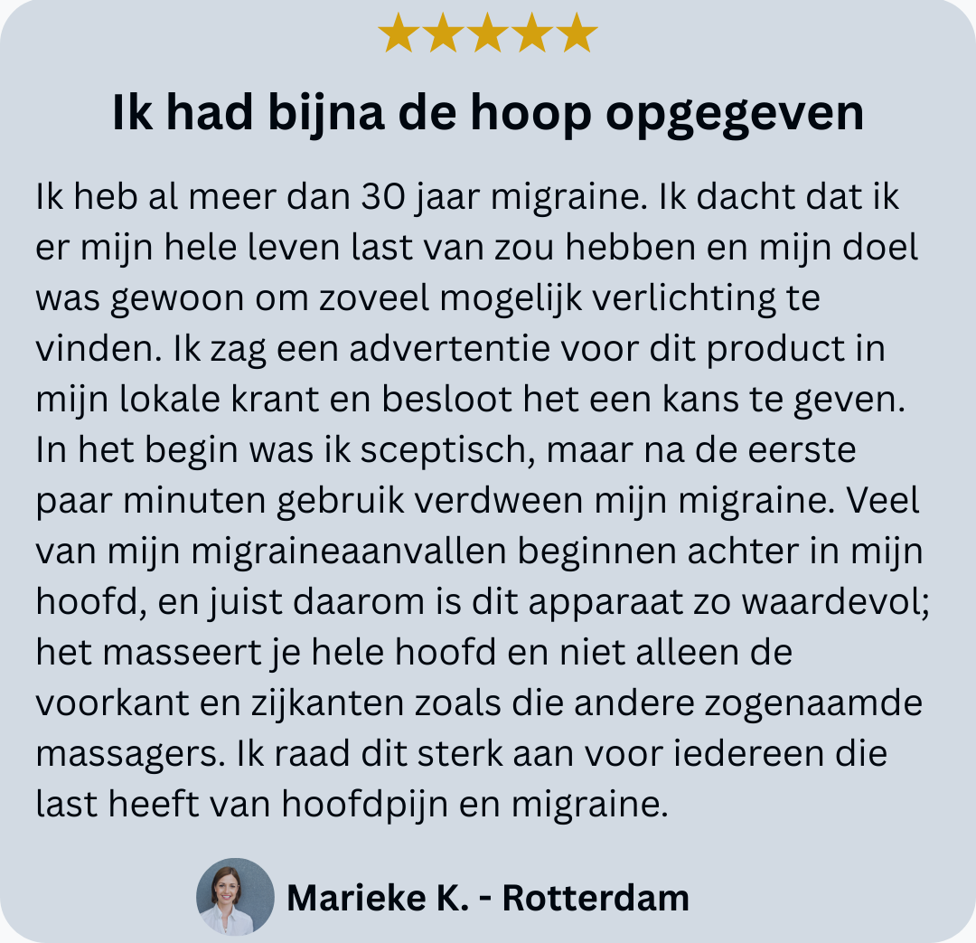 Mijn migraine is aanzienlijk verminderd en het voelt heerlijk om te gebruiken na een lange dag.